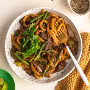 Black Pepper Beef is a Chinese-style stir-fry with beef strips and vegetables, cooked in a delicious sauce flavoured with coarsely ground black pepper. Transform this restaurant classic into a noodle dish by adding your favourite noodles!