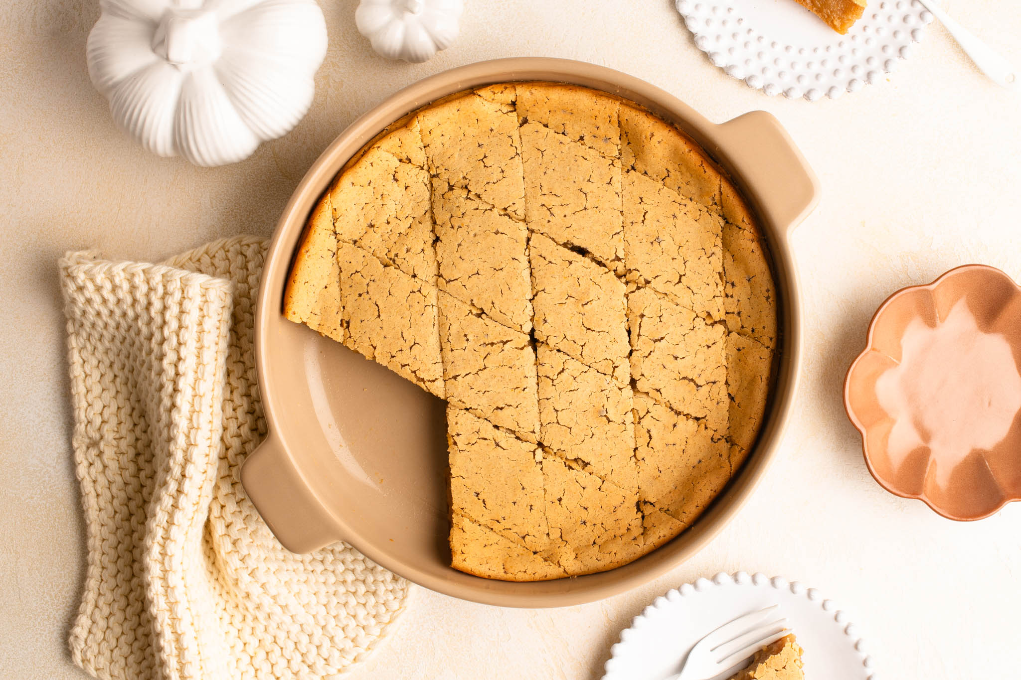 Whenever autumn rolls around, my thoughts turn to all things pumpkin spice, and this Pumpkin Spice Mochi Cake is a new favourite in our home. What is delicious about a baked mochi cake is the crispy topping and edges which contrasts beautifully against the soft and chewy cake slice. My son and I compete against each other for the edges and, as mochi cake loses any crispness the next day, it is one of the rare times when I let my family eat a cake from the outer edges inwards.